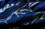 Le Ndop est une étoffe traditionnelle et rituelle bamiléké. Il s’agit d’un assemblage de bandes de coton cousues bord à bord avec des motifs géométriques blanc sur fond bleu indigo. Tous ces motifs formes géométriques, représentations d’animaux, d’étoiles, du soleil, … ont une valeur symbolique et en font le vêtement rituel des sociétés secrètes : porter le Ndop, n’est pas anodin.
